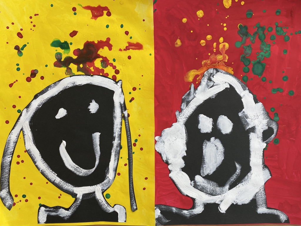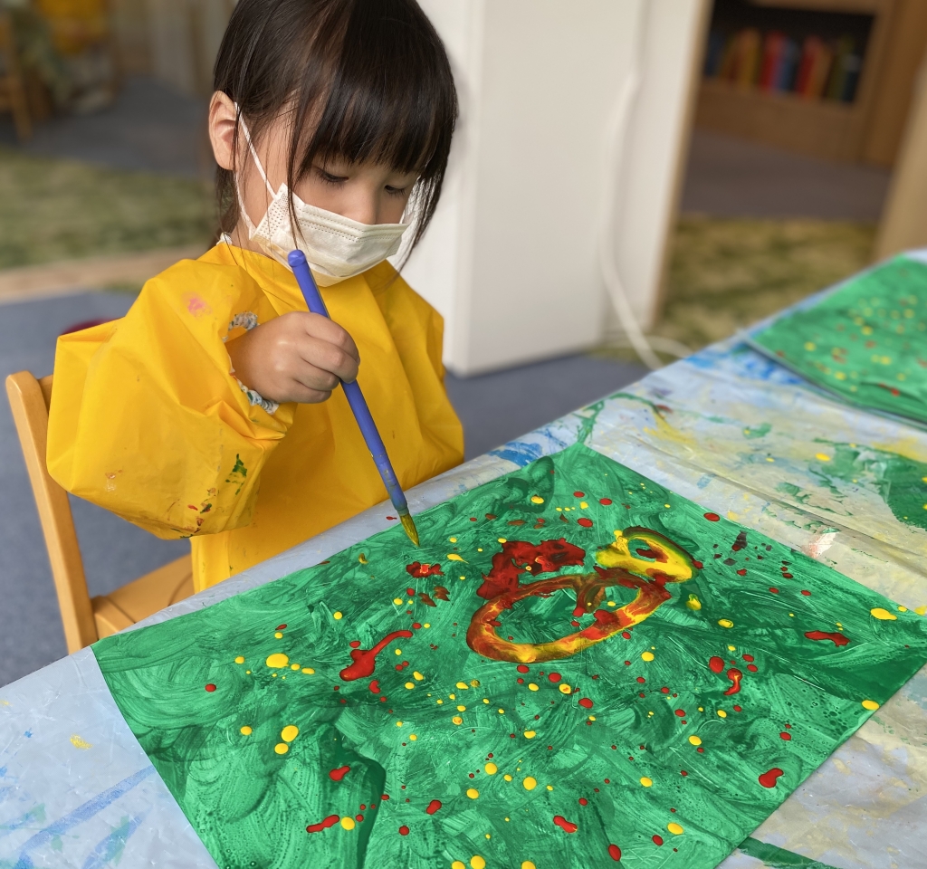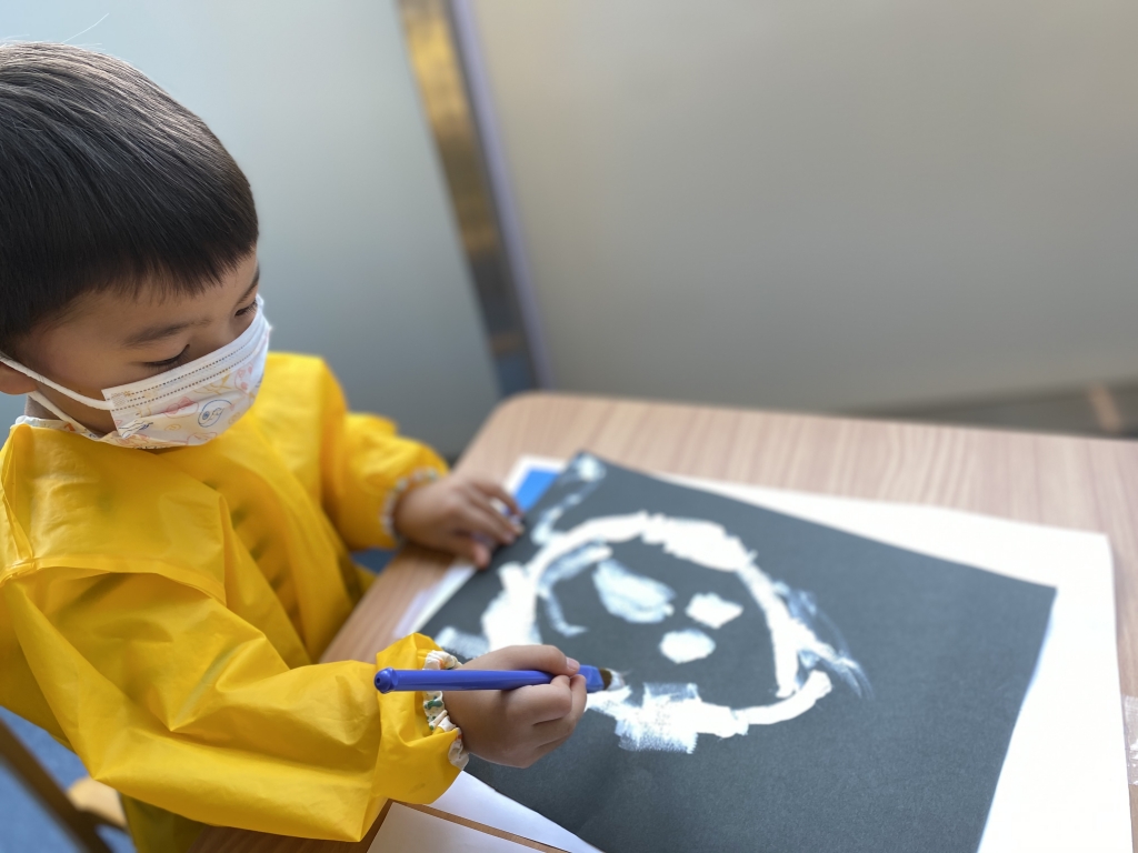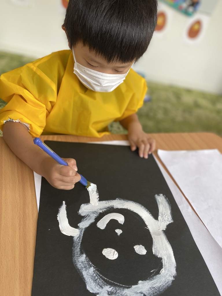 今月のArtのテーマは、「Portrait (自画像)」です。Elmクラスでは、絵具と筆のみを使って描きました。