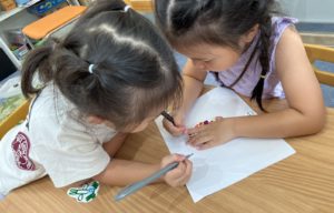 Today at Prime Academic Preschool Gotanda students studied art during their afternoon classes. Every week we do art twice. Once during the day which is level specific and once during the afternoon which all the students from our youngest p2 students right up to our oldest Jupiter 6 students participate in.