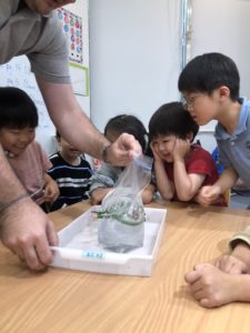 The children were wide-eyed and thrilled as the pencils slid through the bag, learning about how plastic can seal tightly around objects.