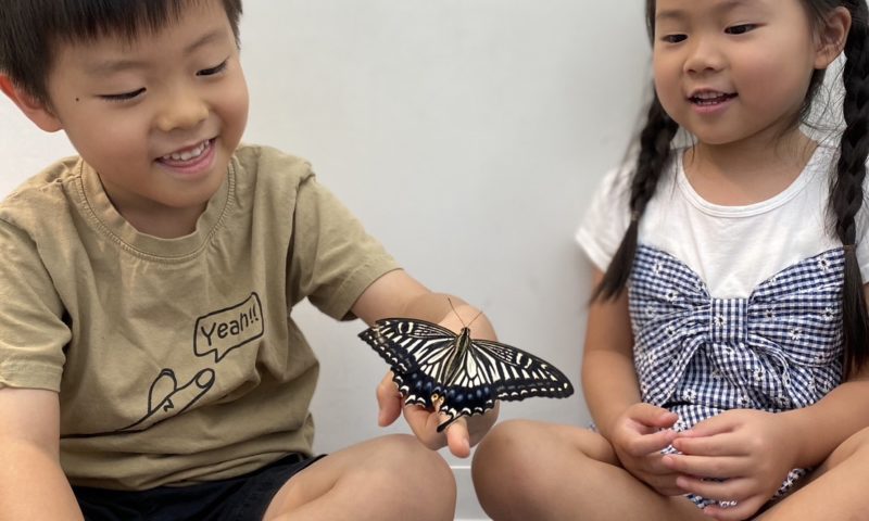 芋虫からサナギになり蝶になる一連の成長過程を観察し、