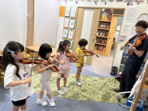For K3 students we study 2 instruments every week. They take separate lessons for both violin and pianica. The students usually have 2 25-30 minute classes every week with 2 different teachers.