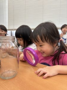 Once the ants were settled, we observed them closely using magnifying glasses. We noticed how they moved, carried food, and interacted with each other. It was exciting to see all the tiny details up close that we couldn’t see outside.