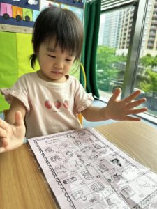 こちらは最近のP1.P2(1.2歳児クラス)のPhonicsの様子です。