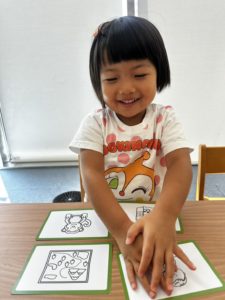 絵単語カードを使って単語を学び、Textbookでは正しく綺麗に書けるように練習します✏️