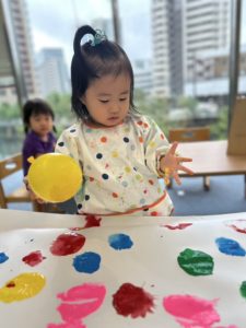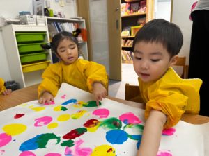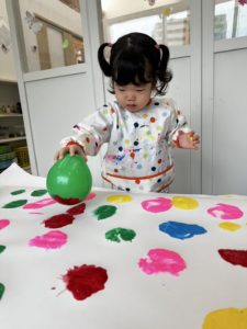 Last week, we did a craft that was both colorful and creative using balloons and paint! Each of us chose our favorite color of paint and dipped a balloon into it. Then we pushed the balloon onto a large piece of paper to make bright and exciting prints.