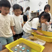 他のグループは、砂で何か作っています。