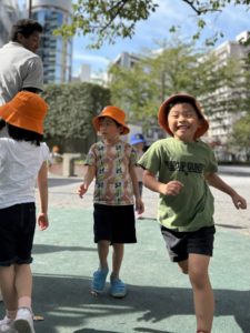 遊具で遊んだり、みんなが作ったオリジナルの鬼ごっこのようなゲームで追いかけっこをしています。