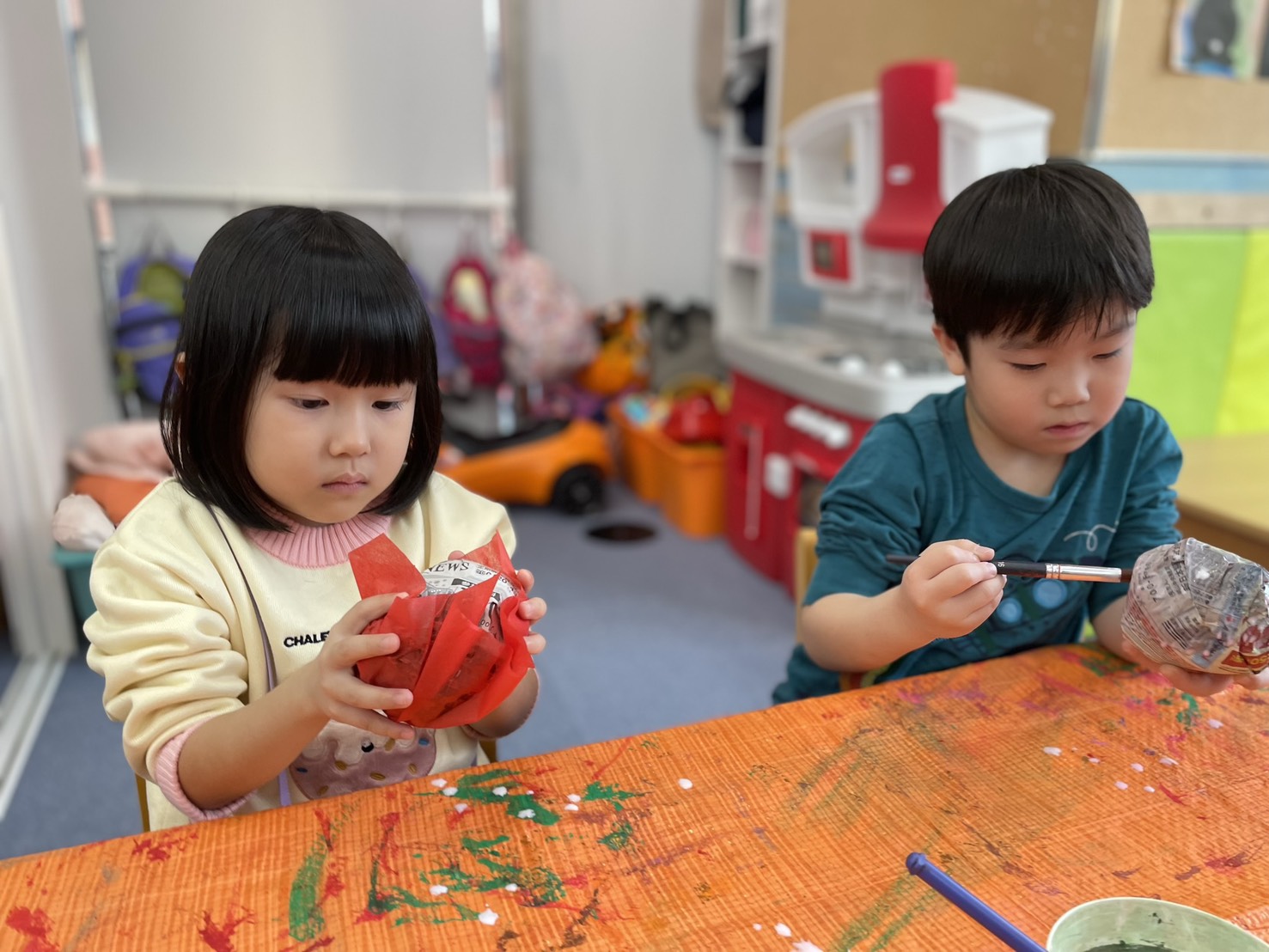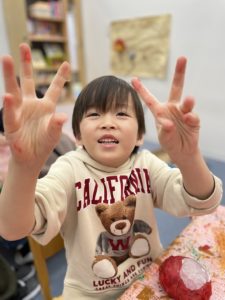 We began our Daruma art project with lots of excitement and hands on creativity!