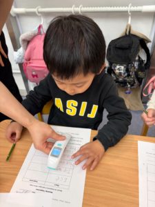 Then, we did some exercise! We moved our bodies to get warm, and then we measured our temperature again to see if it changed.