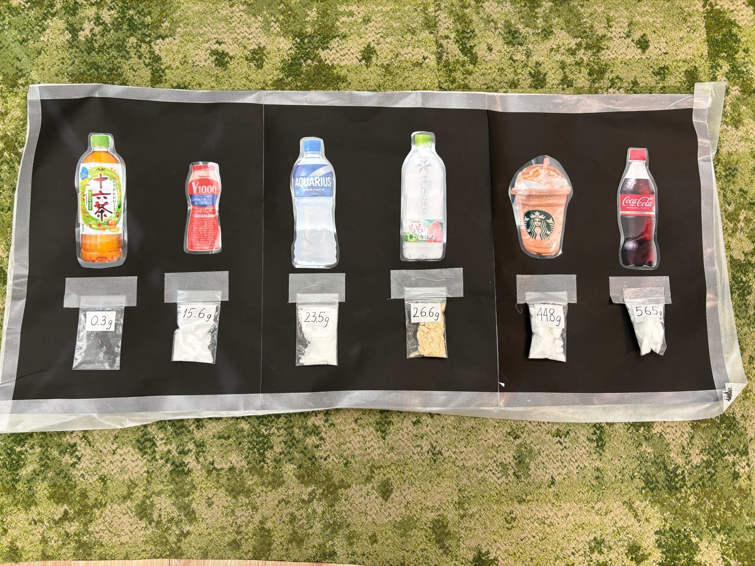 今日は、いろいろな食べ物に含まれている「かくれ砂糖」について学びました!