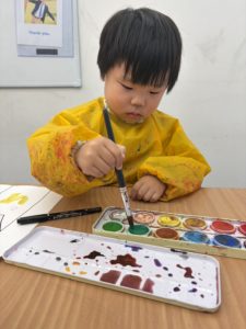 Before painting, we reviewed how to use watercolor paints carefully. Watercolor can be wonderfully messy, so the children had to follow directions closely to control the amount of water and paint they used. Painting activities like this help develop hand-eye coordination and fine motor control.
