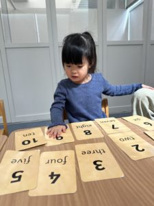 One activity we enjoy is practicing numbers and counting with large, tactile flashcards. The cards are laid out in front of each child, and they are challenged to point to the number that is called out. This kind of movement-based activity helps keep the students engaged while they strengthen their number recognition and counting skills.