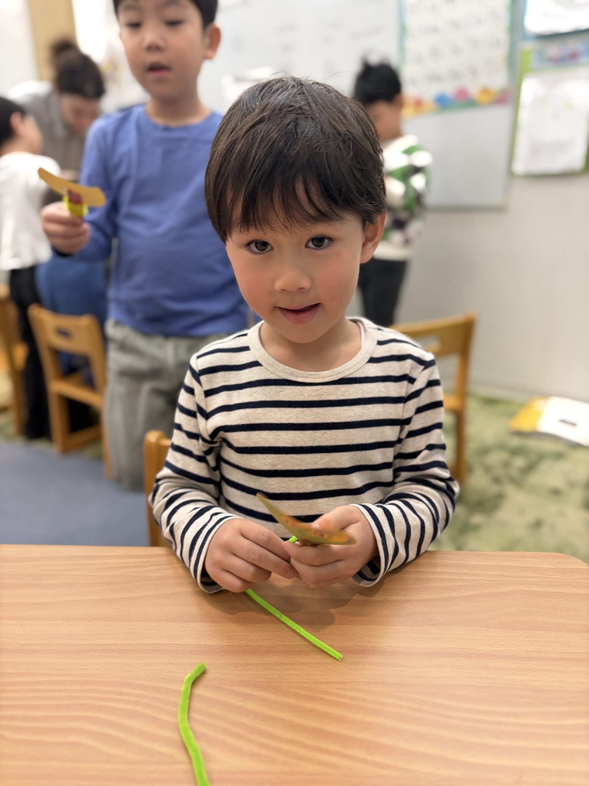 After that, we wrapped colorful pipe cleaners around the stick 🧶