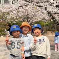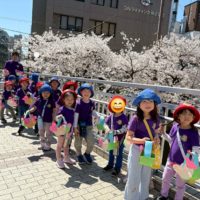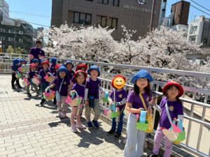 The children held hands and walked nicely together to the park. The weather was beautiful, and we even got to take a group picture with the lovely cherry blossoms along the way.