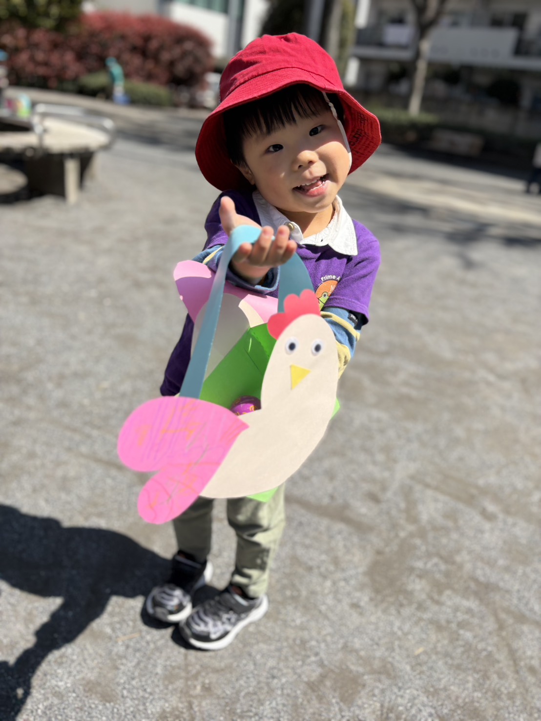 ​Everyone brought their amazing handmade chicken baskets to carry their treasures. As soon as we arrived at the park, the students searched everywhere for the hidden eggs.