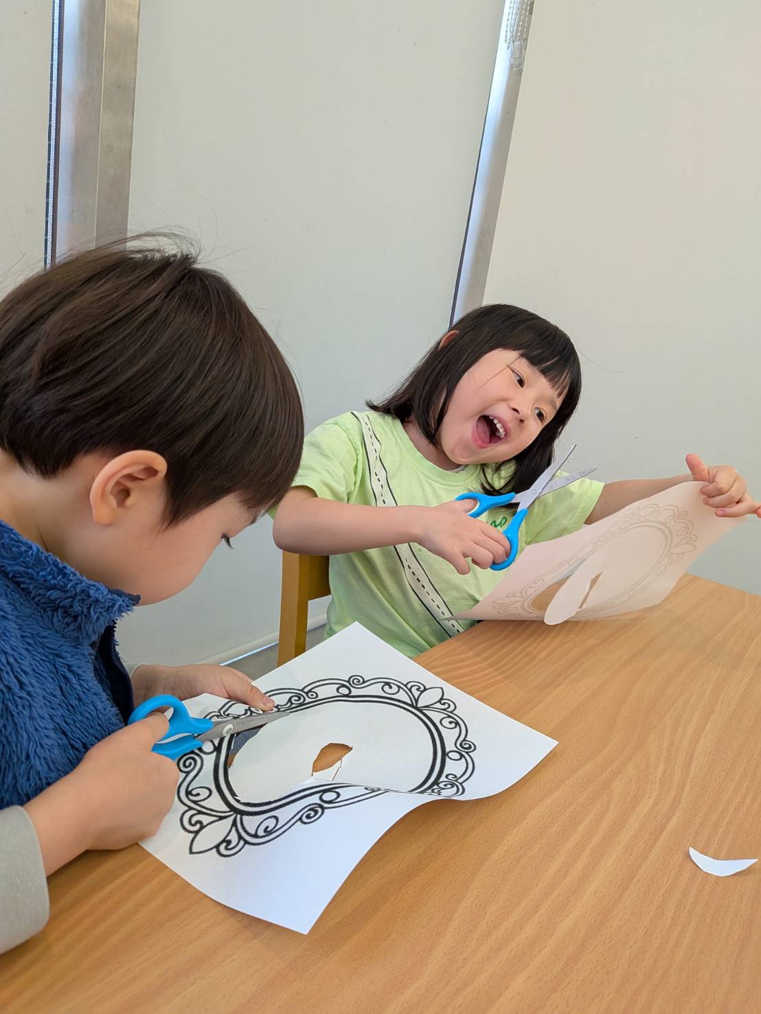 Our older students took on an extra challenge by carefully cutting out their own frames. The intricate designs required patience and control, making it a great activity for developing fine motor skills and dexterity. Once completed, the frames were pasted onto backing paper, ready for the next step.