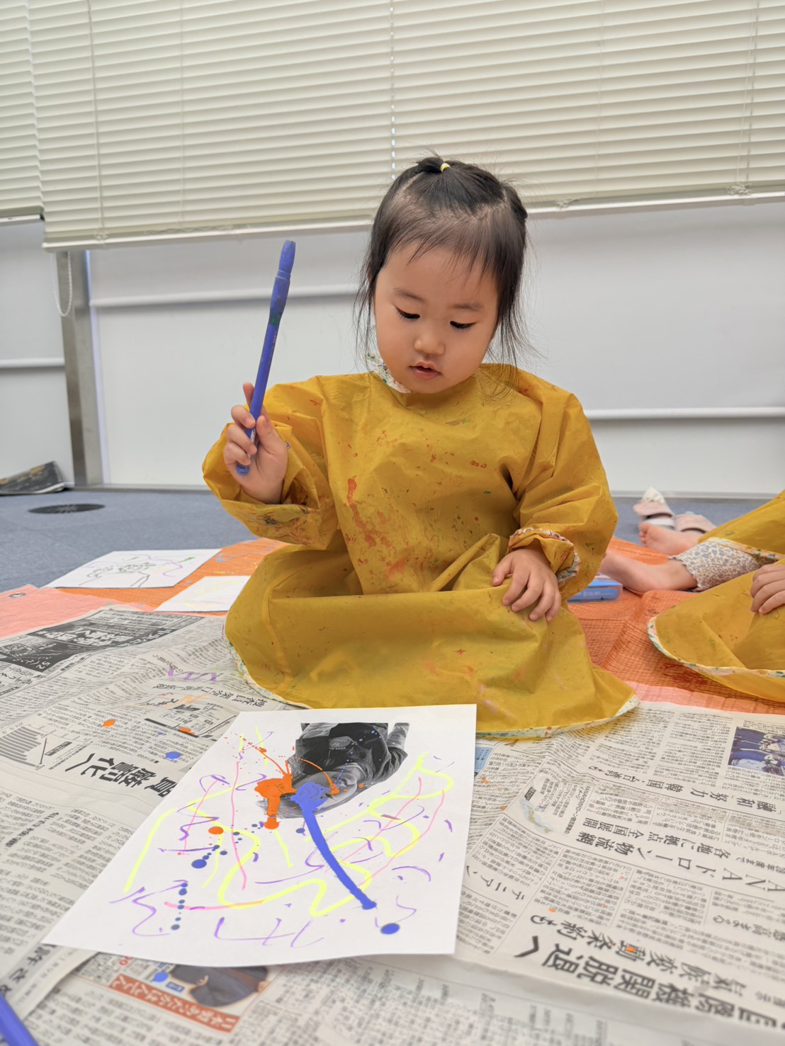Our younger students also explored self-expression in their own way. Instead of drawing, they were given printed photos of themselves, which they decorated using colorful paint splatter. The results were bright, playful, and full of personality.