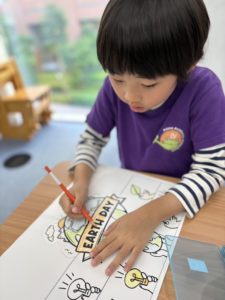 First, the students worked hard to decorate their very own Earth Day hats. They carefully used markers and pencils to color the land, the ocean, and the sun.