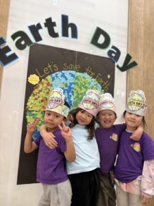 Finally, the students proudly wore their finished hats and took beautiful pictures in front of our giant Earth masterpiece. Our poster reminds us all: “Let’s save the Earth!”